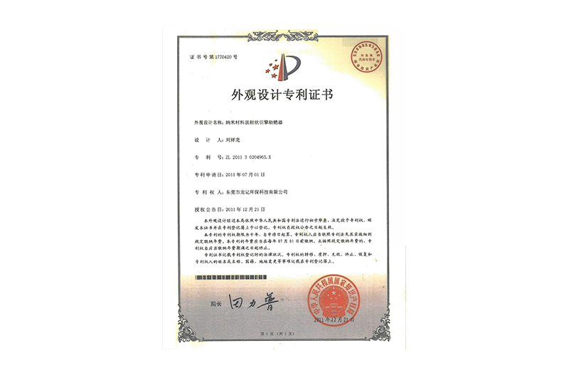 • 外觀設(shè)計(jì)專利證書